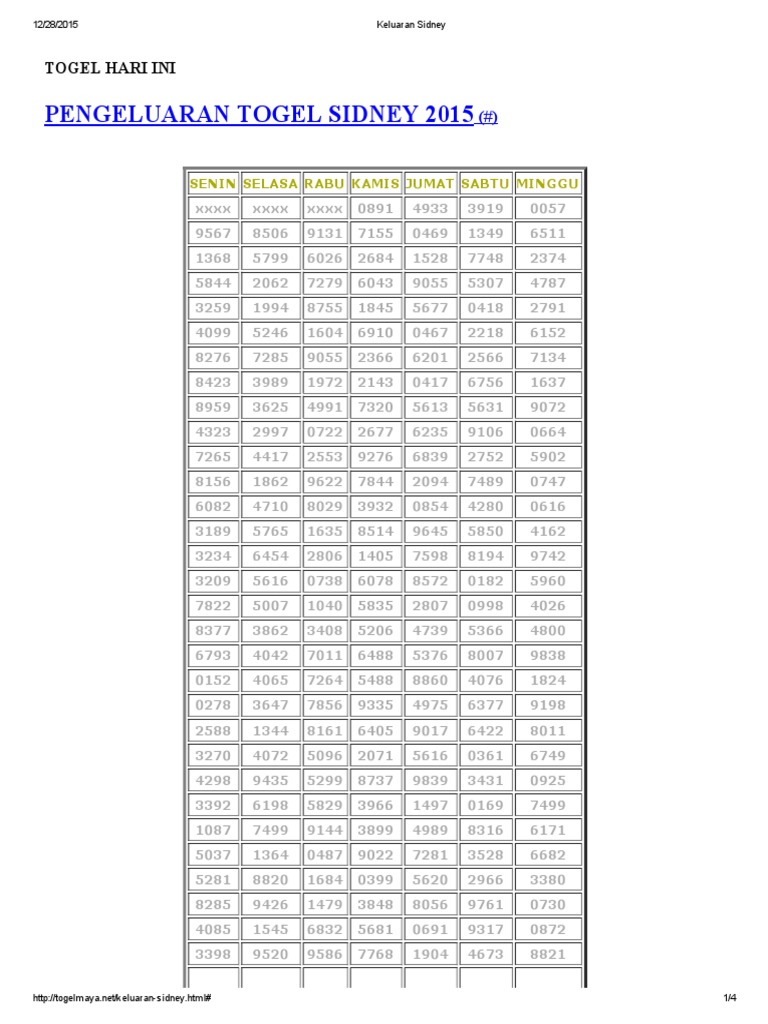 Data Togel Sydney 2019 Data Keluaran Togel Sydney 2019