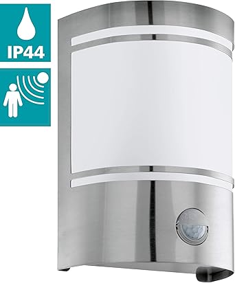 Eglo Aussen Wandlampe Cerno 1 Flammige Aussenleuchte Inkl Bewegungsmelder Sensor Wandleuchte Aus Edelstahl Farbe Silber Weiss Glas Weiss Satiniert Fassung E27 Ip44 Amazon De Beleuchtung