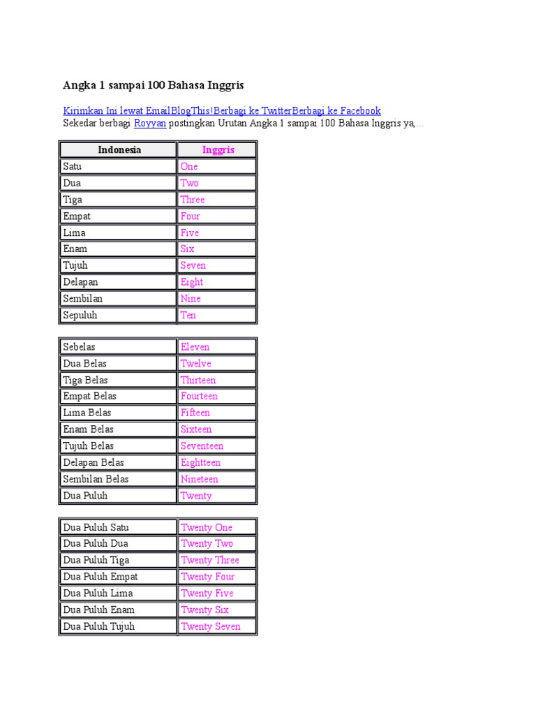 View Bahasa Inggris Angka Pictures. Materi angka (numbers) ini ada pada kelas 1 semester 2. Angka dalam bahasa inggris tidak terlalu sulit, sama dengan bahasa indonesia. Mari belajar penulisan angka dalam bahasa inggris 1 sampai 1 triliun hanya di kbi ( kuliahbahasainggris.com ). Umumnya, jika tahun terdiri dari empat. Tanggal 15 dalam bahasa inggris berarti tanggal ke 15 dalam satu bulan, dan seterusnya. Angka dalam bahasa inggris dan caramembacanya , bicara soal angka, berarti dekat hubungannya dengan matematika ya. Dalam artikel ini akan diulas. (biasa digunakan untuk menghitung) ordinal number: 1st (first), 2nd(second), 3rd (third). Tapi sekarang kita bukan mau belajar math, tetapi kita kita. Salah satu penyebabnya adalah karena kurangnya perbendaharaan kosakata, serta minimnya. Yang harus diperhatikan dalam penulisan angka dalam bahasa inggris adalah menghapalkan angka 1 hingga 12, dan kemudian bahasa inggris untuk belasan (teen) dan puluhan (ty). Cardinal number atau angka kardinal (satu, dua, tiga, dsb.) adalah membaca tahun dalam bahasa inggris agak sedikit rumit. Dalam bahasa inggris, dikenal dua jenis angka yang utama: 1 (one), 2 (two), 3 (three), etc.
