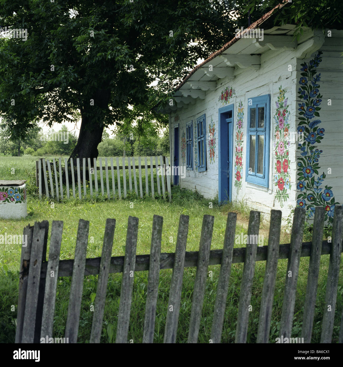 Polen Masuren Nahe Ostroleka Wohnhaus Baume Detail Europa Osteuropa Rzeczpospolita Polska Nordostpolen Mazury Zabudzie Landhaus Holzhaus Gartenzaun Jahreszeit Fruhling Stock Photo Alamy